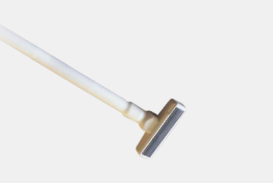 Linear array side-fire “T” transducer for open surgical procedures.